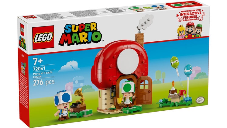 Έλα στο πάρτι με τον Blue Toad και τον Green Toad! Ετοίμασε φαγητό στην κουζίνα και βάλε μπαλόνια στον κήπο. Φάε τούρτα και γύρισε τον δίσκο του γραμμόφωνου. Μετά ξεκουράσου στο υπνοδωμάτιο! Για διαδραστικό παιχνίδι, κάλεσε στο πάρτι τους LEGO® Mario™, LEGO® Luigi™ ή LEGO® Peach™ (δεν περιλαμβάνονται) – πάτησε στις Ετικέτες Δράσης για να ενεργοποιήσεις ήχους κουδουνιού και μουσική!