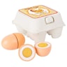 Τι θα φάμε; Αυτά τα 4 αυγά από συμπαγές ξύλο προσφέρουν νέα διασκέδαση στο παιχνίδι ρόλων. Αποτελούνται από δυο κομμάτια που συνδέονται με Velcro® και μπορούν να διαχωριστούν για ρεαλιστικό παιχνίδι. Το χαρτονένιο κουτί των αυγών έχει σχήμα αυγοθήκης και αποθηκεύει τα αυγά για την ασφαλή μεταφορά τους. Αυτά τα αυγά είναι μια εξαιρετική προσθήκη στα κουζινικά παιχνίδια και μπορούν να συνδυαστούν ιδανικά με άλλα ξύλινα παιχνίδια ρόλων. Θα εντυπωσιαστούν όλοι όταν θα ανοίξετε την… αυγοθήκη για πρώτη φορά!