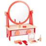 Το σαλόνι ομορφιάς είναι ανοιχτό! Με αυτό το συμπαγές ξύλινο τραπέζι μακιγιάζ σε ρετρό σχέδιο, τα όνειρα των μικρών κοριτσιών μπορούν να γίνουν πραγματικότητα. Διάφορα ξύλινα σκεύη μακιγιάζ και περιποίησης μαλλιών συμπληρώνουν αυτό το σετ και μπορούν να αποθηκευτούν στο συρτάρι χωρισμένο σε τρία διαμερίσματα για εξοικονόμηση χώρου. Με το μικρό του μέγεθος, αυτό το τραπέζι μακιγιάζ ταιριάζει σε κάθε παιδικό δωμάτιο