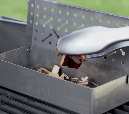 Το Smoker Box δίνει στα φαγητά σου μία ιδιαίτερη γεύση καπνιστού. Τοποθέτησε το Smoker Box ακριβώς πάνω από τις σχάρες μαγειρέματος για να μετατρέψεις οποιαδήποτε ψησταριά αερίου σε φούρνο καπνού για να δώσεις στα κρέατα, τα λαχανικά, τους ξηρούς καρπούς και τα τυριά σου τη λαχταριστή καπνιστή γεύση που θέλεις. Εμπλούτησε το φαγητό σας με μια νότα από ξύλο αγριόφυλλου, μήλου, βελανιδιάς ή κερασιάς.