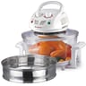 O πολυμάγειρας με γυάλινο δοχείο 12L και μεταλλικό δακτύλιο επέκτασης που αυξάνει τη συνολική χωρητικότητα στα 18L. Διαθέτει βάση στήριξης από ABS και γυάλινο καπάκι με διακόπτη χρονοδιακόπτη και ρύθμιση θερμοκρασίας έως 250°C, με κόκκινη ένδειξη λειτουργίας και πράσινη ένδειξη επίτευξης θερμοκρασίας. Περιλαμβάνει λειτουργία αερόθερμης κυκλοφορίας και συνοδεύεται από χαμηλή σχάρα, ψηλή σχάρα, λαβίδα και ταψάκι ψησίματος. Εύκολος στη συναρμολόγηση και στον καθαρισμό.