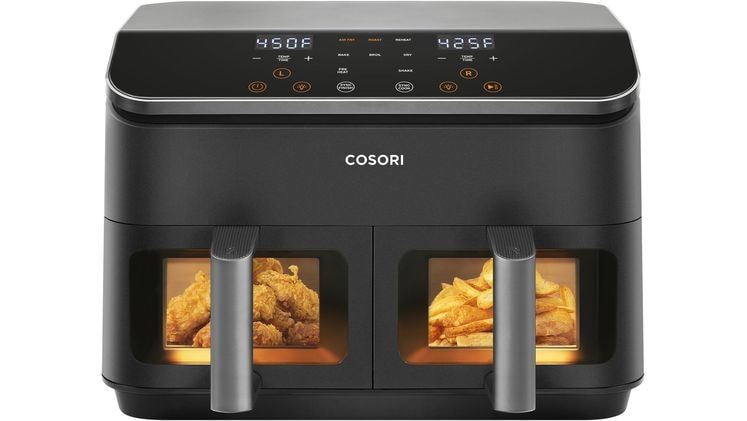 Η COSORI 9.0-Quart Dual Basket Air Fryer προσφέρει απόλυτη ευελιξία στο μαγείρεμα με 8 προσαρμόσιμες λειτουργίες και 2 ανεξάρτητα καλάθια (4.5L το καθένα) για διαφορετικά φαγητά ταυτόχρονα.