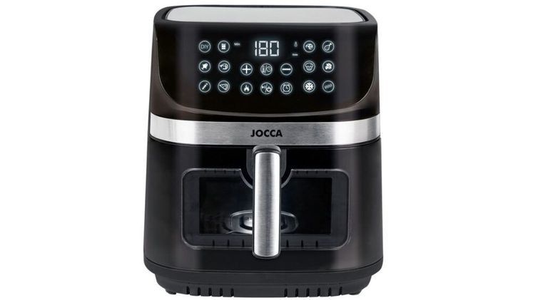 Η Jocca ψηφιακή φριτέζα αέρα 9L με διπλή αντίσταση προσφέρει υγιεινό και γρήγορο μαγείρεμα με ελάχιστο ή και καθόλου λάδι, διατηρώντας τη γεύση και την τραγανή υφή των φαγητών. Επιτρέπει τηγάνισμα, ψήσιμο, γκρατινάρισμα, ζέσταμα και απόψυξη, ενώ διαθέτει λειτουργίες προθέρμανσης και καθυστερημένης εκκίνησης για μεγαλύτερη ευελιξία. Ο μοντέρνος σχεδιασμός με παράθυρο στο καπάκι και οθόνη αφής LED περιλαμβάνει 10 προγράμματα μαγειρέματος, εξασφαλίζοντας εύκολη και ακριβή χρήση. Με αυτόματη απενεργοποίηση, ψυχρή λαβή και αποσπώμενο δοχείο και πλέγμα, προσφέρει ασφάλεια και εύκολο καθαρισμό. Ιδανική επιλογή για μεγάλες ποσότητες και υγιεινά γεύματα σε λίγα λεπτά.