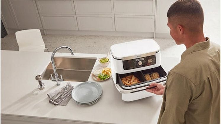 Η φριτέζα αέρος της Ninja προσφέρει εξοικονόμηση ενέργειας έως 45% σε σχέση με έναν φούρνο, μετατρέποντας από DualZone σε MegaZone για μεγαλύτερη ευχέρεια μαγειρέματος.