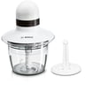 Περιλαμβάνει ανθεκτικό μπολ 800ml χωρίς BPA, κατάλληλο για φούρνο μικροκυμάτων έως 80°C, και δίσκο χτυπήματος για κρέμα και ασπράδια.
