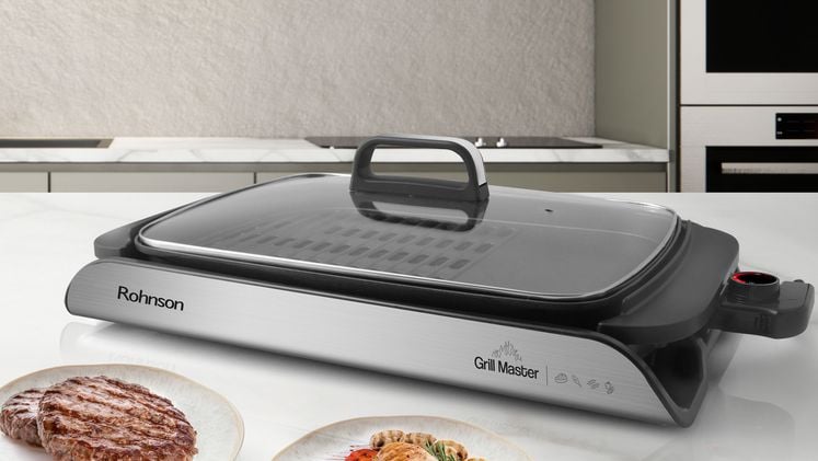 Με αντικολλητική κι αποσπώμενη πλάκα, χωρίς PFAs και BPAs, μεγάλη επιφάνεια ψησίματος 30x40cm, και ανοιγμένο, γυάλινο καπάκι, ανθεκτικό στη θερμότητα το R-2528 “Grill Master” εγγυάται γευστικό αποτέλεσμα ψησίματος κάθε φορά κι εργονομία χρήση με μειωμένο καπνό κατά το ψήσιμο.