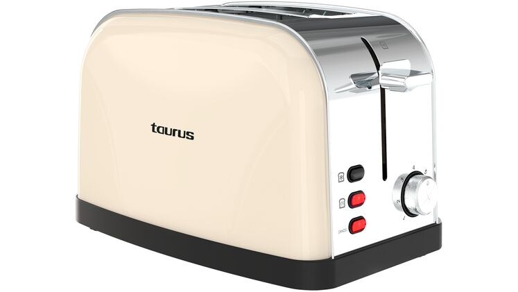 Η φρυγανιέρα της TAURUS με ισχύ 950W, ανοξείδωτο σώμα και ρετρό εμφάνιση διαθέτει 2 χαμηλές υποδοχές 135x35 mm και 3 λειτουργίες: απόψυξη, αναθέρμανση και ακύρωση.