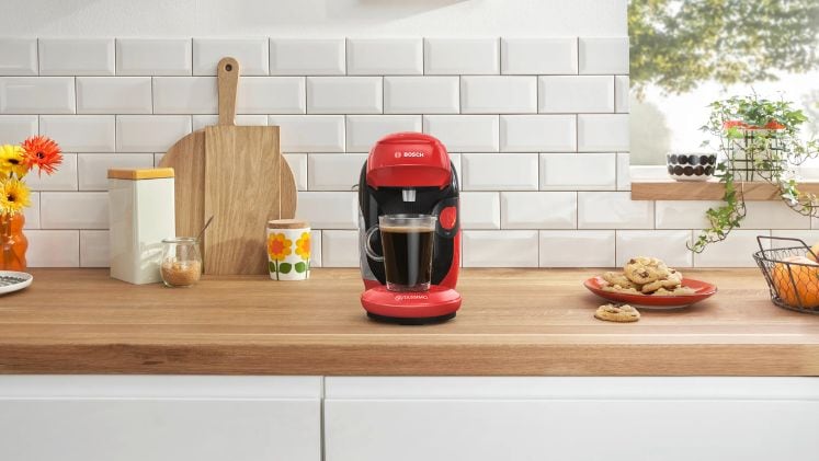 Χάρη στις μικρές της διαστάσεις, η TASSIMO εξοικονομεί πολύ χώρο στην κουζίνα σου. Παρά το συμπαγές της μέγεθος, αυτή η TASSIMO μπορεί να χρησιμοποιηθεί για την ίδια ευρεία γκάμα ροφημάτων και μαρκών όπως και όλες οι άλλες μηχανές TASSIMO.