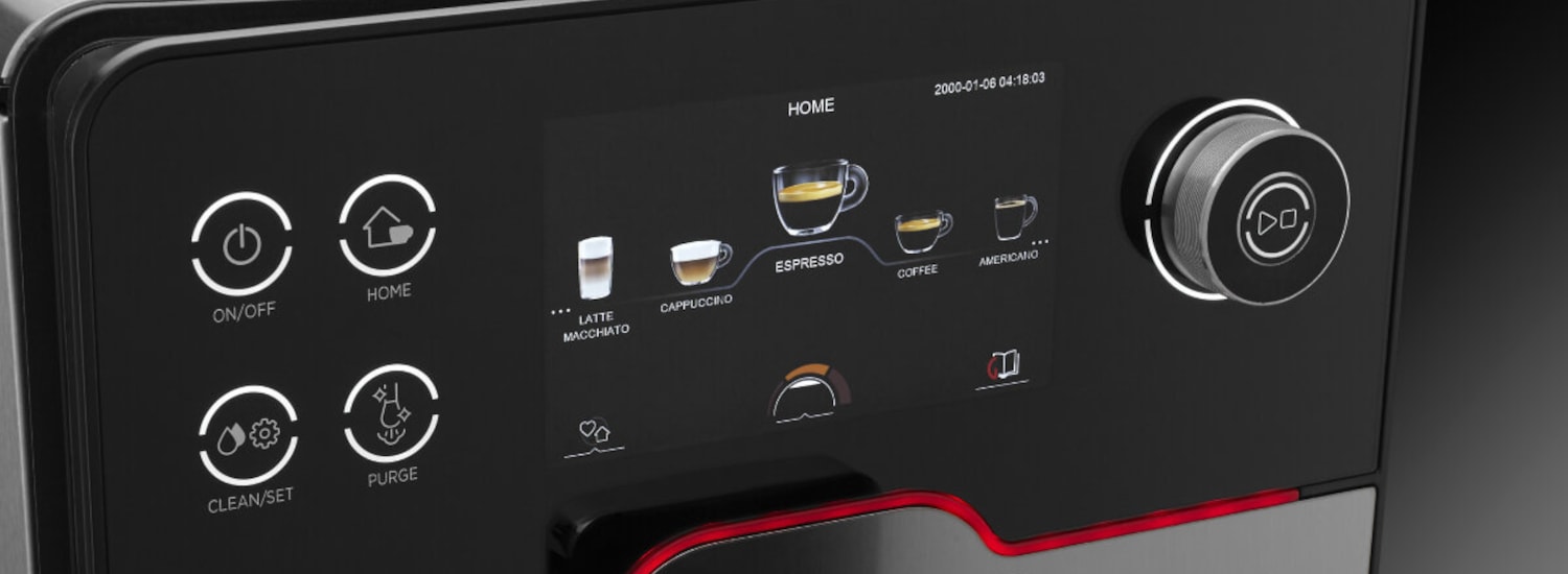 4 φωτιζόμενα χωρητικά πλήκτρα δίνουν άμεση πρόσβαση σε 4 βασικές λειτουργίες και ρυθμίσεις της μηχανής. Λειτουργία Espresso Plus System: το πάχος της κρέμας ρυθμίζεται με την περιστροφή του στροφείου που βρίσκεται πάνω από τον εκροέα. 3 διαβαθμίσεις, ελαφριά κρέμα για ελαφριά γεύση έως πυκνή κρέμα και μεγαλύτερη ένταση στη γεύση. Λειτουργία Aroma setting: Ρύθμισης της έντασης του αρώματος του καφέ επιλέγοντας την ποσότητα αλεσμένου καφέ στο φλυτζάνι μεταξύ 5 επιλογών. Λειτουργία Coffee boost: Λειτουργία Οn the Fly: Ρυθμίζει την ποσότητα του ροφήματος κατά την εκχύλιση. Επαγγελματικό ακροφύσιο ατμού παρασκευάζει ιδανικό πλούσιο σε γεύση και σώμα αφρόγαλα για latte art.