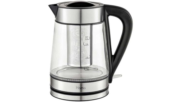 Ο βραστήρας της Homa με χωρητικότητα 1,7L και σώμα από ανθεκτικό βοριοπυριτικό γυαλί διαθέτει φίλτρο τσαγιού και καλυπτόμενο θερμαντήρα από ανοξείδωτο χάλυβα.