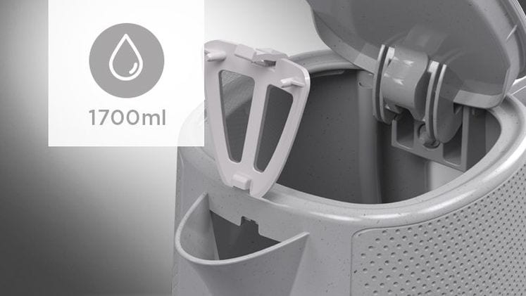Διαθέτει ένδειξη πληρότητας νερού, αποσπώμενο φίλτρο και αυτόματη απενεργοποίηση.