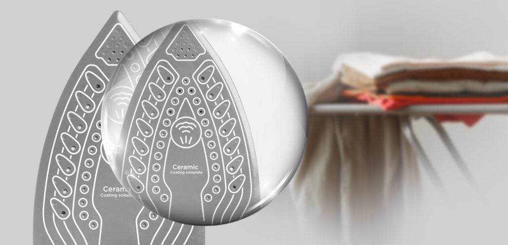 Η ανθεκτική κεραμική πλάκα εξασφαλίζει ομοιόμορφη κατανομή θερμότητας και άψογη ολίσθηση, μειώνοντας τον χρόνο σιδερώματος. Απολαύστε γρήγορο, αποδοτικό σιδέρωμα με επαγγελματικά αποτελέσματα. Ανθεκτική στις γρατσουνιές και εύκολη στον καθαρισμό, για μακροχρόνια χρήση.