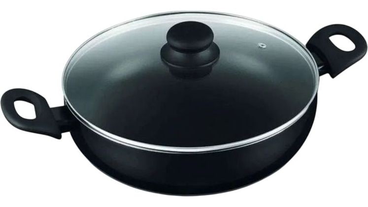 Αντικολλητικό πλακερό 28cm με χωρητικότητα 4,2L, φιλικό προς το περιβάλλον (χωρίς PFOA) και κατάλληλο για όλες τις εστίες, ακόμα και επαγωγικές.