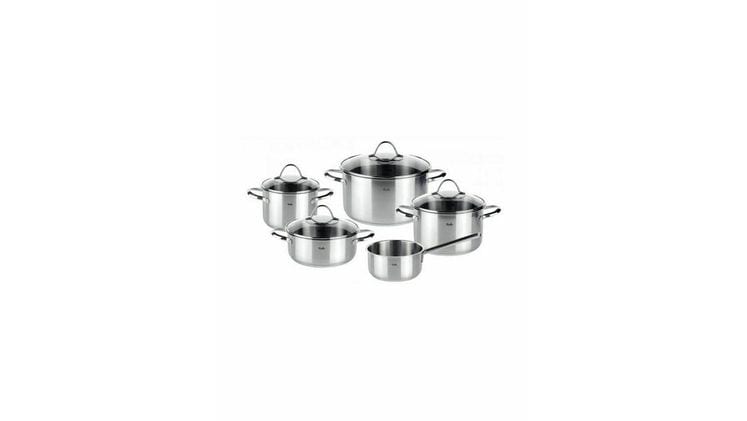 Το σετ κατσαρολών FISSLER Paris Line περιλαμβάνει 5 τεμάχια κατασκευασμένα από ανοξείδωτο ατσάλι, προσφέροντας αντοχή, ποιότητα και κομψό σχεδιασμό για καθημερινή χρήση.