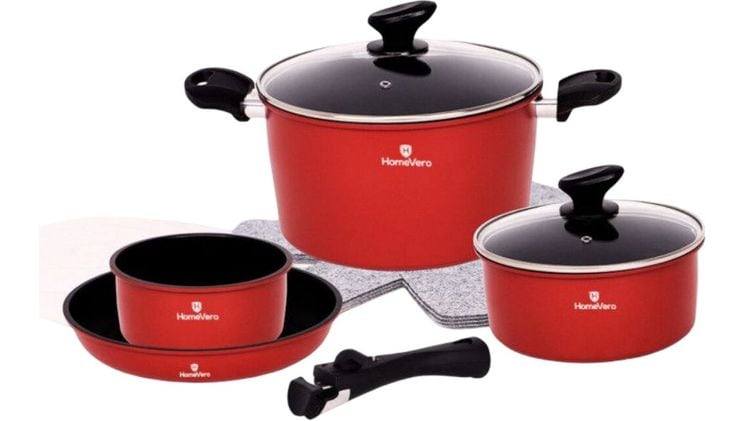 Το σετ περιλαμβάνει κατσαρόλες, τηγάνι, αποσπώμενο χερούλι, καπάκια και προστατευτικά επιφάνειας, εξοικονομώντας έως και 50% χώρο.