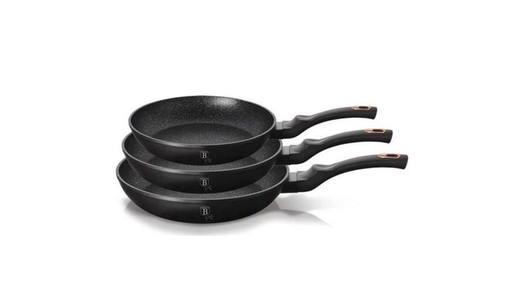 Αντικολλητική επίστρωση μαρμάρου 3 στρώσεων, Εργονομικές λαβές soft-touch, Turbo induction πάτος, Ανάρτηση σε γάντζο, Χωρίς PFOA, Μόλυβδο και Κάδμιο, Κομψός σχεδιασμός σε μαύρο με rose gold λεπτομέρειες