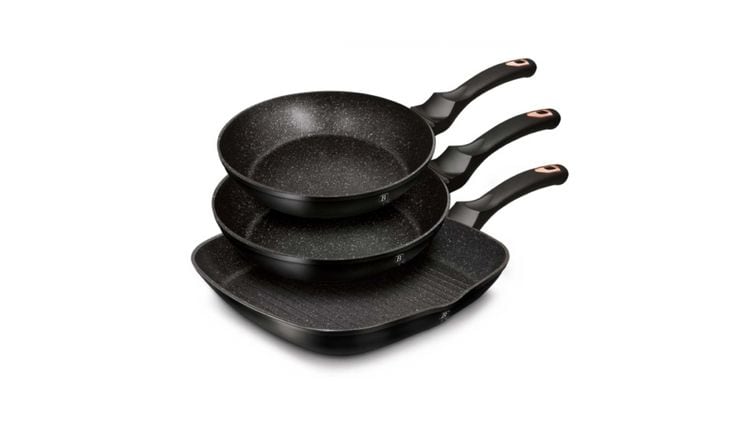 Αντικολλητική επίστρωση μαρμάρου 3 στρώσεων, Εργονομικές λαβές με soft-touch, Turbo induction πάτος, Χωρίς PFOA, Μόλυβδο και Κάδμιο, Κομψός σχεδιασμός σε μαύρο και ροζ χρυσό