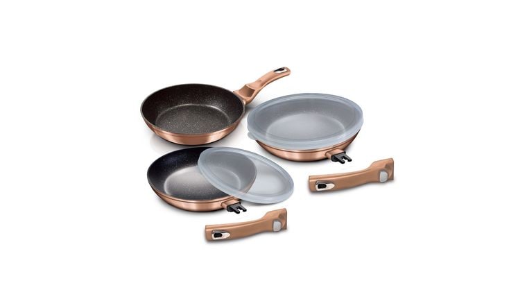 Αντικολλητική επίστρωση μαρμάρου 3 στρώσεων, Εργονομικές soft-touch λαβές με δυνατότητα αφαίρεσης, Turbo induction πάτος, Στοιβαζόμενος σχεδιασμός, Έξυπνα καπάκια, Χωρίς PFOA, Μόλυβδο και Κάδμιο