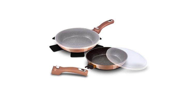 2 τηγάνια με αφαιρούμενες λαβές, 2 καπάκια smart lid