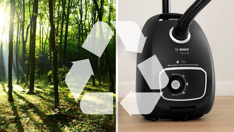 Με δέσμευση στη βιωσιμότητα, οι ηλεκτρικές σκούπες Bosch αναπτύσσονται με σεβασμό προς το περιβάλλον και με εξοικονόμηση φυσικών πόρων. Η συγκεκριμένη σκούπα είναι κατασκευασμένη από 32% ανακυκλωμένο πλαστικό, ενώ η συσκευασία της από 95% ανακυκλωμένο χαρτί με κομποστοποιήσιμα και ανακυκλώσιμα υλικά στο εσωτερικό της. Χάρη στον κινητήρα Bosch Γερμανικής κατασκευής, θα απολαμβάνεις τη συσκευή για πολλά χρόνια.
