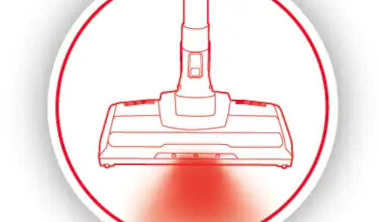 Η συστοιχία ισχυρών λυχνιών LED, στο μπορστινό μέρος του πέλματος, φωτίζει τα σκοτεινά σημεία, όπως κάτω από έπιπλα, για να μην σου ξεφεύγει τίποτα.