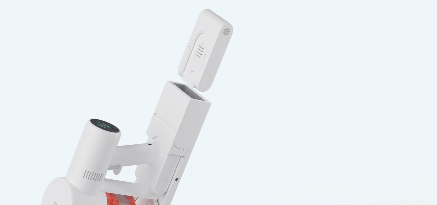 Ο σχεδιασμός αφαιρούμενης μπαταρίας σάς επιτρέπει να αντικαταστήσετε την μπαταρία με ένα μόνο κλικ. Διπλασιάστε εύκολα την αυτονομία της σκούπας, ώστε να συνεχίσετε χωρίς καθυστερήσεις. Καθαρίστε με ευκολία, χωρίς να ανησυχείτε για τη διάρκεια ζωής της μπαταρίας.