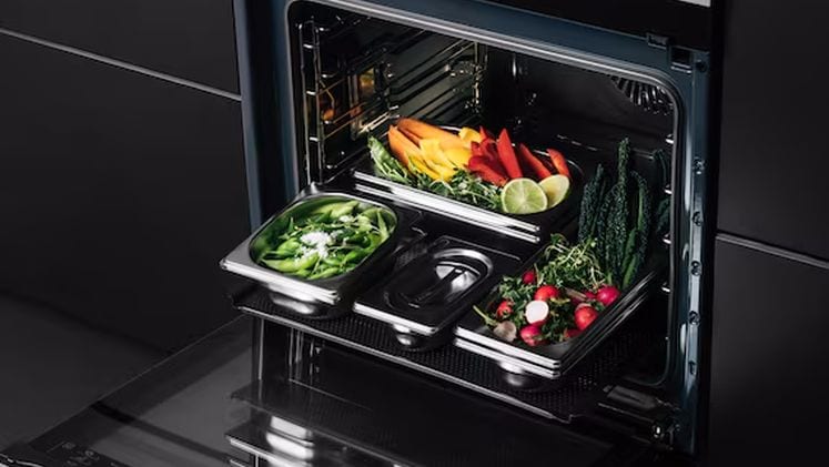 Με το σετ ατμού AEG, αξιοποιείς πλήρως τις δυνατότητες του φούρνου σου. Οι μικρές οπές στα σκεύη επιτρέπουν στον ατμό να κυκλοφορεί σωστά γύρω από το φαγητό, διατηρώντας τη γεύση και την υφή του.