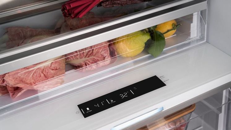 Με 4 ράφια από διαφανές κρύσταλλο και 3 θήκες πόρτας με αλουμινένιο προφίλ, η εργονομία και η κομψότητα συνυπάρχουν. Επιπλέον, η φρουτολεκάνη και τα 3 συρτάρια chiller με ανεξάρτητο έλεγχο θερμοκρασίας προσφέρουν ιδανική αποθήκευση για κάθε είδος τροφίμου.