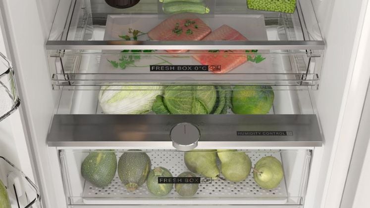 Το FreshBox+ διατηρεί φρούτα και λαχανικά φρέσκα έως και 15 ημέρες, χάρη στην ιδανική υγρασία. Παράλληλα, το FreshBox 0° κρατά το κρέας και τα ψάρια σε σταθερά χαμηλή θερμοκρασία, διατηρώντας τη γεύση και τα θρεπτικά τους στοιχεία. Έχεις δύο ξεχωριστά συρτάρια αποθήκευσης για να οργανώνεις τα πάντα με ευκολία.