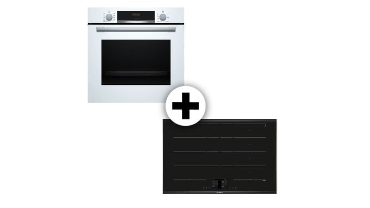 Αναβάθμισε την κουζίνα σου με το σετ Bosch HBA534BW3 φούρνου και PXY875KW1E επαγωγικής εστίας, που συνδυάζει υψηλή τεχνολογία και μοντέρνο σχεδιασμό.