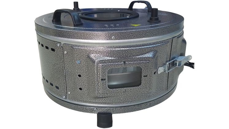Το φουρνάκι AF120 με ισχύ 1100W διαθέτει ρυθμιζόμενο θερμοστάτη 50°–300°C, γυάλινο καπάκι για εύκολη επίβλεψη, σώμα και ταψί από αλουμίνιο διαμέτρου 40cm.