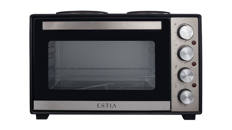 Το Estia Multicook Compact είναι ένα πρακτικό φουρνάκι με εστίες σε κομψό μαύρο χρώμα.