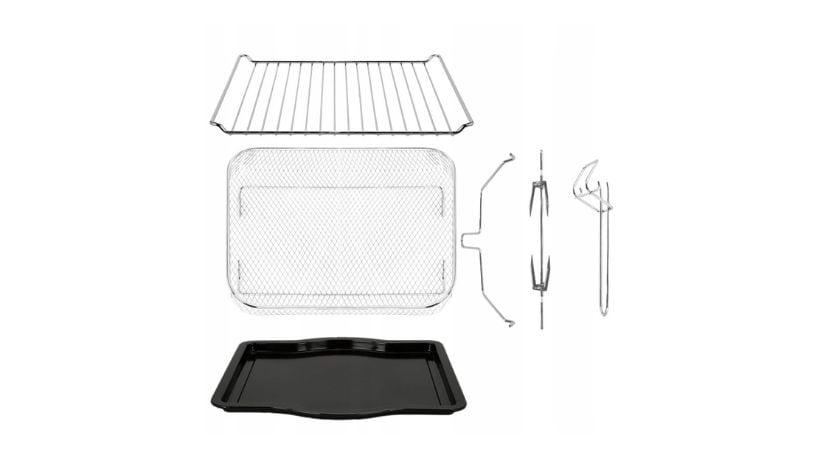 Ο φούρνος περιλαμβάνει ταψί, σχάρα, καλάθι τηγανίσματος, σούβλα και λαβές για να κάνει την κουζίνα σου πιο πρακτική από ποτέ.