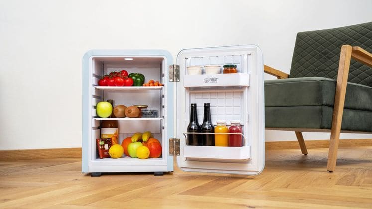 Το TZS First Austria FA-5172-3-BL είναι ένα silent retro mini fridge σε απόχρωση Light Blue που συνδυάζει κομψό design με πρακτικότητα. Ιδανικό για γραφεία, δωμάτια ξενοδοχείων, τροχόσπιτα και φοιτητικές εστίες, προσφέρει χωρητικότητα 40L (34L καθαρά) και θερμοηλεκτικό σύστημα ψύξης που διατηρεί σταθερά 6–8°C όταν η θερμοκρασία περιβάλλοντος είναι 23–25°C. Η ψύξη είναι ρυθμιζόμενη, ενώ ο εσωτερικός φωτισμός, ο συλλέκτης συμπυκνωμάτων, οι 2 ρυθμιζόμενες θήκες πόρτας και τα 4 πλαστικά ράφια εξασφαλίζουν ευέλικτη οργάνωσ ενώ το look ολοκληρώνεται με υψηλής γυαλάδας μεταλλικό χερούλι και το κομψό λογότυπο TZS.