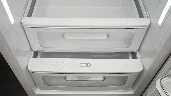 Το ειδικά σχεδιασμένο συρτάρι διαθέτει διάτρητο πάνελ, το οποίο μπορείς να ρυθμίσεις ώστε να προσαρμόζει τον αερισμό και την υγρασία μέσα στο διαμέρισμα.