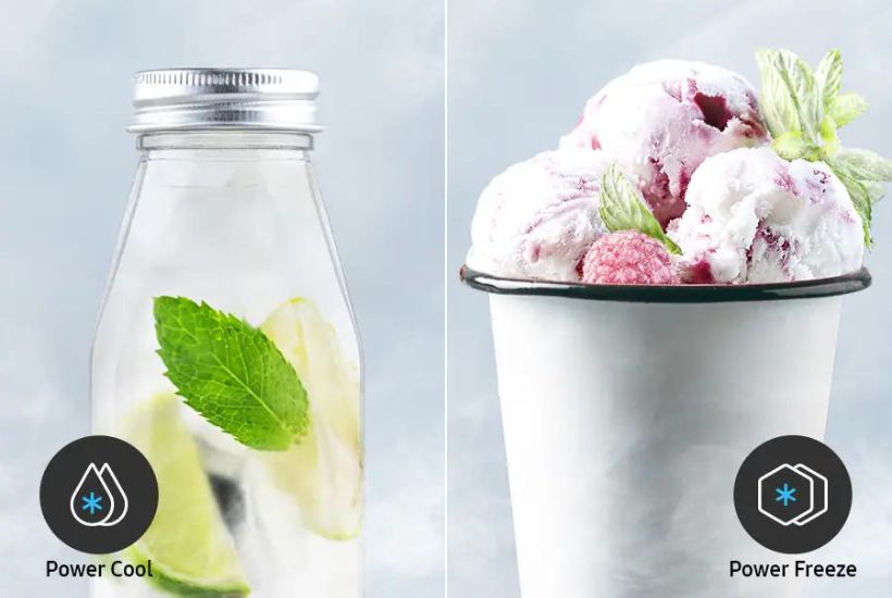 Η ταχύτητα είναι επίσης σημαντική. Με το πάτημα ενός κουμπιού, η λειτουργία Power Cool μεταφέρει μια ισχυρή έκρηξη κρύου αέρα μέσα στο ψυγείο για να ψύξει γρήγορα τα τρόφιμα και τα ποτά, ενώ η λειτουργία Power Freeze κάνει το ίδιο στον καταψύκτη. Μία τεχνολογία εξαιρετική για την κατάψυξη ή την ψύξη τροφίμων στο σωστό σημείο, αλλά και για την παρασκευή πάγου.