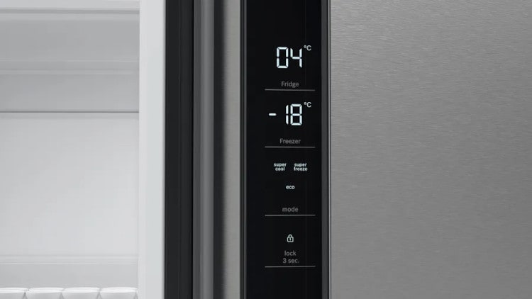 Μέσω του πίνακα ελέγχου μπορείς να διασφαλίσεις την σωστή λειτουργεία τόσο στην ψύξη, όσο και στην κατάψυξη. Επιπλέον, μπορείς να παρέμβεις και αλλάξεις οποιαδήποτε ρύθμιση δεν σε εξυπηρετεί. Αναλυτικότερα, ο πίνακας ελέγχου περιέχει: Διακόπτης super, κατάψυξης, διακόπτη super, συντήρησης, ένδειξη θερμοκρασίας κατάψυξης, ένδειξη θερμοκρασίας ψύξης, σήμα προειδοποίησης για βλάβη, σήμα προειδοποίησης για βλάβη κατάψυξης, σήμα προειδοποίησης όταν η πόρτα είναι ανοιχτή.
