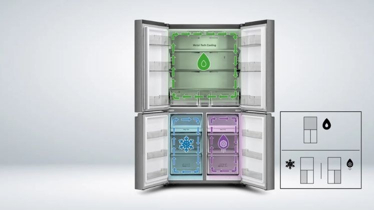 Το σύστημα Dual-Tech Cooling είναι η καρδιά της φρεσκάδας στο ψυγείο σου. Εγγυάται ιδανικά επίπεδα υγρασίας τόσο στο χώρο της συντήρησης όσο και της κατάψυξης, αποτρέποντας την ανάμιξη οσμών και παρατείνοντας τη ζωή των τροφίμων σου. Τα διαφορετικά επίπεδα υγρασίας σε κάθε διαμέρισμα δημιουργούν ένα τέλειο κλίμα, διατηρώντας τα λαχανικά σου τραγανά και το κρέας σου φρέσκο για περισσότερο, κάθε μέρα.