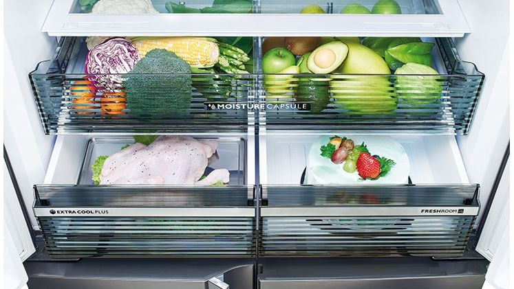 Το SHARP SJ-MP780D-BS διαθέτει πρακτικά και ειδικά σχεδιασμένα συρτάρια που κάνουν τη διαφορά στην καθημερινή σου χρήση. Στο πάνω μέρος ξεχωρίζει το Moisture Capsule, το οποίο διατηρεί την υγρασία σταθερή, ιδανικό για φρούτα και λαχανικά που θέλεις να παραμείνουν φρέσκα και τραγανά. Από κάτω, το Extra Cool Plus συρτάρι προσφέρει συνθήκες κοντά στους 0°C, ιδανικές για τρόφιμα όπως κρέας και ψάρια που χρειάζονται πιο χαμηλή θερμοκρασία αλλά όχι κατάψυξη. Τέλος, το Fresh Room σου επιτρέπει να διατηρείς τρόφιμα ευαίσθητα στη θερμοκρασία σε άριστη κατάσταση. Με αυτά τα συρτάρια, έχεις τη δυνατότητα να οργανώνεις καλύτερα τον χώρο σου και να παρατείνεις τη φρεσκάδα των προϊόντων σου.