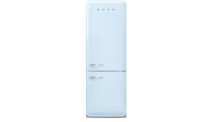 Φέρε την αισθητική των 50s και την κορυφαία τεχνολογία στην κουζίνα σου με τον ψυγειοκαταψύκτη Smeg FAB38RPB6 σε παστέλ μπλε.