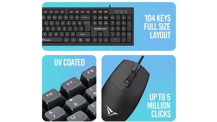 Το πληκτρολόγιο του σετ Alcatroz Xplorer C3600 διαθέτει 104 πλήκτρα soft & silent, εξασφαλίζοντας μια μοναδική, ήσυχη εμπειρία πληκτρολόγησης που δεν θα ενοχλήσει κανέναν στον χώρο σου. Τα πλήκτρα είναι UV Coated, παρέχοντας αυξημένη αντοχή στη φθορά και προστατεύοντας τα γράμματα από το ξεθώριασμα, ακόμα και μετά από εκτεταμένη χρήση. Η πλήρους μεγέθους διάταξη προσφέρει άνεση και λειτουργικότητα για όλες τις καθημερινές σου εργασίες.
