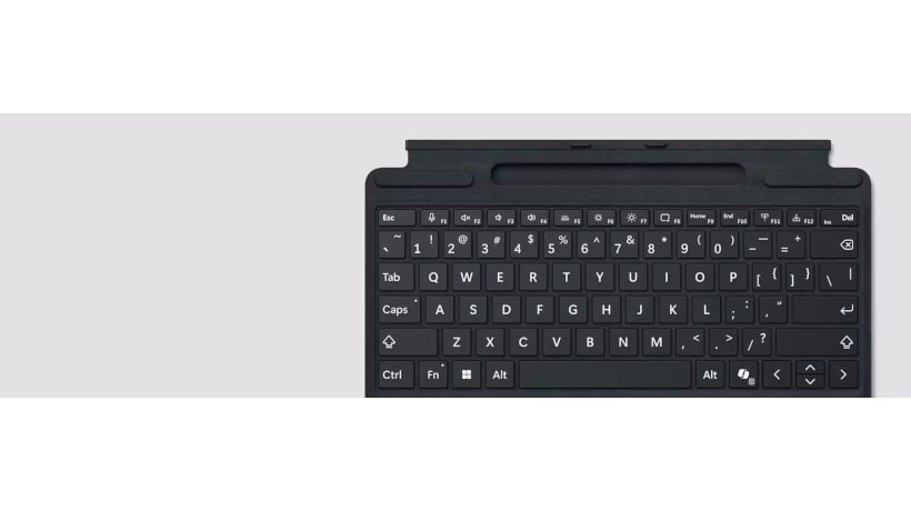 Η ευελιξία επόμενου επιπέδου έρχεται με το τέλειο, premium πληκτρολόγιο, που διαθέτει ένα μεγάλο γυάλινο touchpad και τρία καινοτόμα hot keys, συμπεριλαμβανομένου του νέου πλήκτρου Copilot για AI power στα χέρια σου. Ένας ενσωματωμένος δίσκος αποθήκευσης Surface Slim Pen παρέχει ασφαλή και εύκολη επαναφόρτιση.