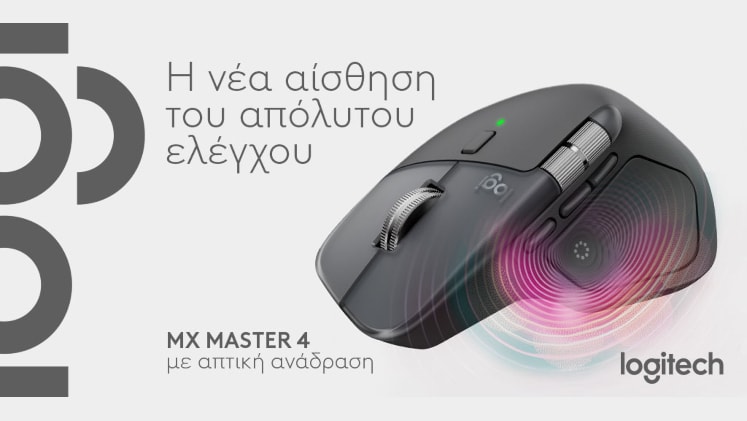 Το Logitech MX Master 4 είναι ένα εργονομικό, ασύρματο ποντίκι Bluetooth που προσφέρει άνεση και υψηλή απόδοση για επαγγελματική χρήση. Διαθέτει προσαρμόσιμη απτική ανάδραση, Actions Ring για γρήγορες συντομεύσεις και τον τροχό κύλισης MagSpeed, προσφέροντας μια ταχύτερη και πιο αθόρυβη εμπειρία κύλισης. Με συνδεσιμότητα Bluetooth και δέκτη USB-C Logi Bolt, εξασφαλίζει αξιόπιστη ασύρματη σύνδεση. Μελετημένο για Mac, με τα ταιριαστά φινιρίσματα της Apple, τις λειτουργίες Logi Options+ για macOS, το MX Master 4 ταιριάζει απόλυτα με τον εξοπλισμό Apple, ενώ είναι σχεδιασμένο για να βελτιώνει την παραγωγικότητα και να προσφέρει μια απρόσκοπτη εμπειρία χρήσης.