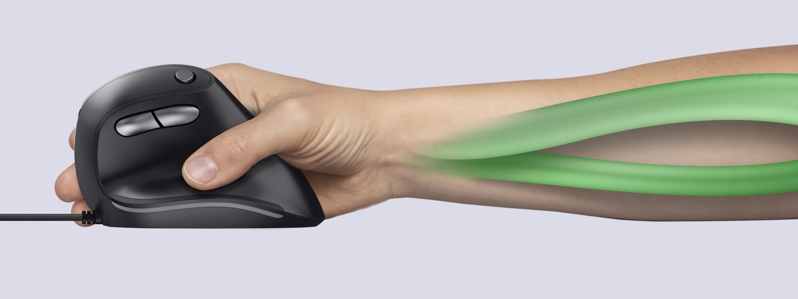 Το ενσύρματο ποντίκι Basi της Trust έχει κάθετο εργονομικό σχεδιασμό, ιδανικό για να μειώσει την καταπόνηση του βραχίονα και του καρπού σου.