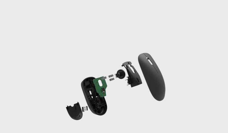 Τροφοδοτούμενο από μία μπαταρία AAA, το ποντίκι διαθέτει έναν ανεξάρτητο διακόπτη λειτουργίας και μια λειτουργία αυτόματης αναστολής λειτουργίας.