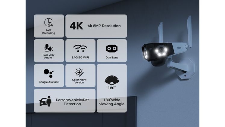 Ανακάλυψε την Reolink Duo Series W750, την κάμερα που σου προσφέρει ολοκληρωμένη εικόνα του χώρου σου, χωρίς τυφλά σημεία. Χάρη στον διπλό φακό της, απολαμβάνεις μία ενιαία, πανοραμική θέαση 180°, με εικόνες που συνδυάζονται έξυπνα για να μην χάνεις καμία λεπτομέρεια. Η ανάλυση 4K UHD εγγυάται εκπληκτική ευκρίνεια, επιτρέποντάς σου να βλέπεις τα πάντα με απόλυτη καθαρότητα, μέρα και νύχτα. Σε συνδυασμό με την ταχύτητα και σταθερότητα του Wi-Fi 6, έχεις αξιόπιστη και άμεση πρόσβαση στο video, όπου και αν βρίσκεσαι.
