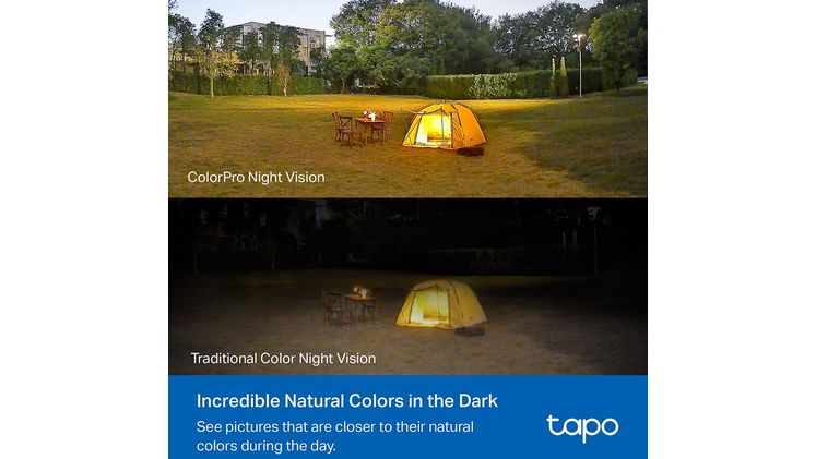 Ζήσε την επανάσταση στην νυχτερινή επίβλεψη με την τεχνολογία ColorPro Night Vision της Tapo C325WB. Αυτή η καινοτομία επιτρέπει στην κάμερα να συλλαμβάνει πλούσια, έγχρωμα πλάνα σε συνθήκες σχεδόν απόλυτου σκοταδιού, χωρίς να χρειάζονται πρόσθετοι προβολείς. Χάρη στον ευρυγώνιο φακό F1.0 Super-Aperture και τον μεγάλο αισθητήρα 1/1.79'', η κάμερα συλλέγει πολύ περισσότερο φως, προσφέροντας εικόνες με φυσικά χρώματα και εξαιρετική καθαρότητα, όπως ακριβώς το βλέπεις την ημέρα.