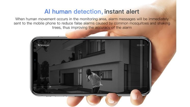 Η Vstarcam CS64 είναι εξοπλισμένη με έξυπνες λειτουργίες Τεχνητής Νοημοσύνης (AI) για πιο αποτελεσματική ασφάλεια. Ενεργοποιεί την ανίχνευση κίνησης, την ανίχνευση ανθρώπινης μορφής (Humanoid detection) και την παρακολούθηση ανθρώπων (Human tracking), ειδοποιώντας σε άμεσα για κάθε σημαντικό συμβάν. Αυτό σημαίνει λιγότεροι ψευδείς συναγερμοί και πιο στοχευμένη πληροφόρηση, ώστε να αντιδράς μόνο όταν πραγματικά χρειάζεται.