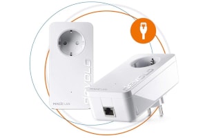 Ενσωματωμένη πρίζα με παιδική ασφάλεια. Ισχυρή σύνδεση ακόμη και σε εξαιρετικά μεγάλες αποστάσεις έως και 400 μέτρα. Αφαίρεσέ το από τη συσκευασία, σύνδεσέ το και ξεκίνησε αμέσως. Ρύθμιση, επέκταση, προσαρμογή, έλεγχος: η νέα, ευρηματική εφαρμογή της devolo για τον χειρισμό του προσαρμογέα devolo Magic. Διαθέσιμο για iOS και Android.