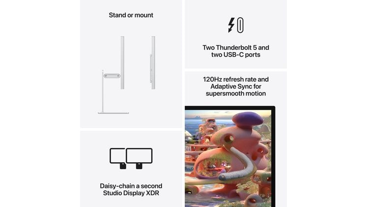 Η οθόνη 27-ιντσών 5K Retina XDR φέρνει τη φωτεινότητα, το χρώμα, και την απόκριση στο επόμενο επίπεδο.¹ Σε συνδυασμό με τις πανίσχυρες δυνατότητες του Thunderbolt 5, την προηγμένη κάμερα, τη διάταξη τριών μικροφώνων και το ηχοσύστημα έξι ηχείων, το Studio Display XDR είναι τέλειο για επαγγελματίες όπως κινηματογραφιστές, σχεδιαστές και προγραμματιστές παιχνιδιών.